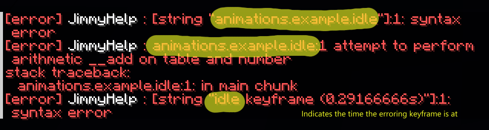 Errors inside keyframes are vary vastly, but you can indentify them by the name of the animation in the error. Here's three examples: